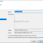 5b. Now at ‘Program/script’ box type shutdown and at ‘Add Arguments’ type /s /t 0